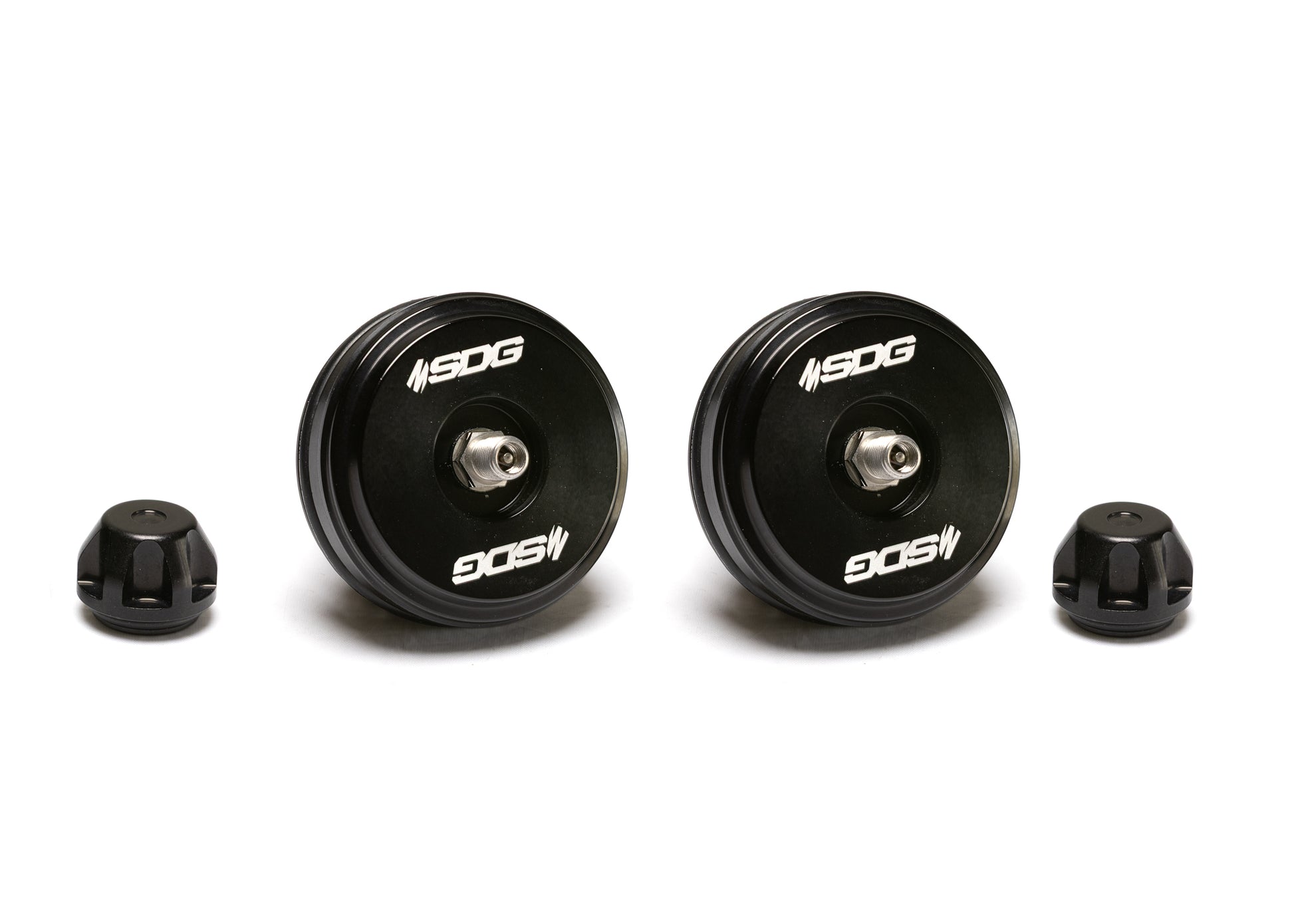 These reservoir end caps are made from 6061 billet aluminum and have been black anodized then engraved with our SDG logo. These end caps have an o-ring based "schrader valve cap" which threads onto the schrader valve and seals it into the recessed pocket. This fully protects it from dirt, debris, mud, or sand. Our SDG replacement end caps also come with a new o-ring for re-installing the replacement end cap back into the shock reservoir.